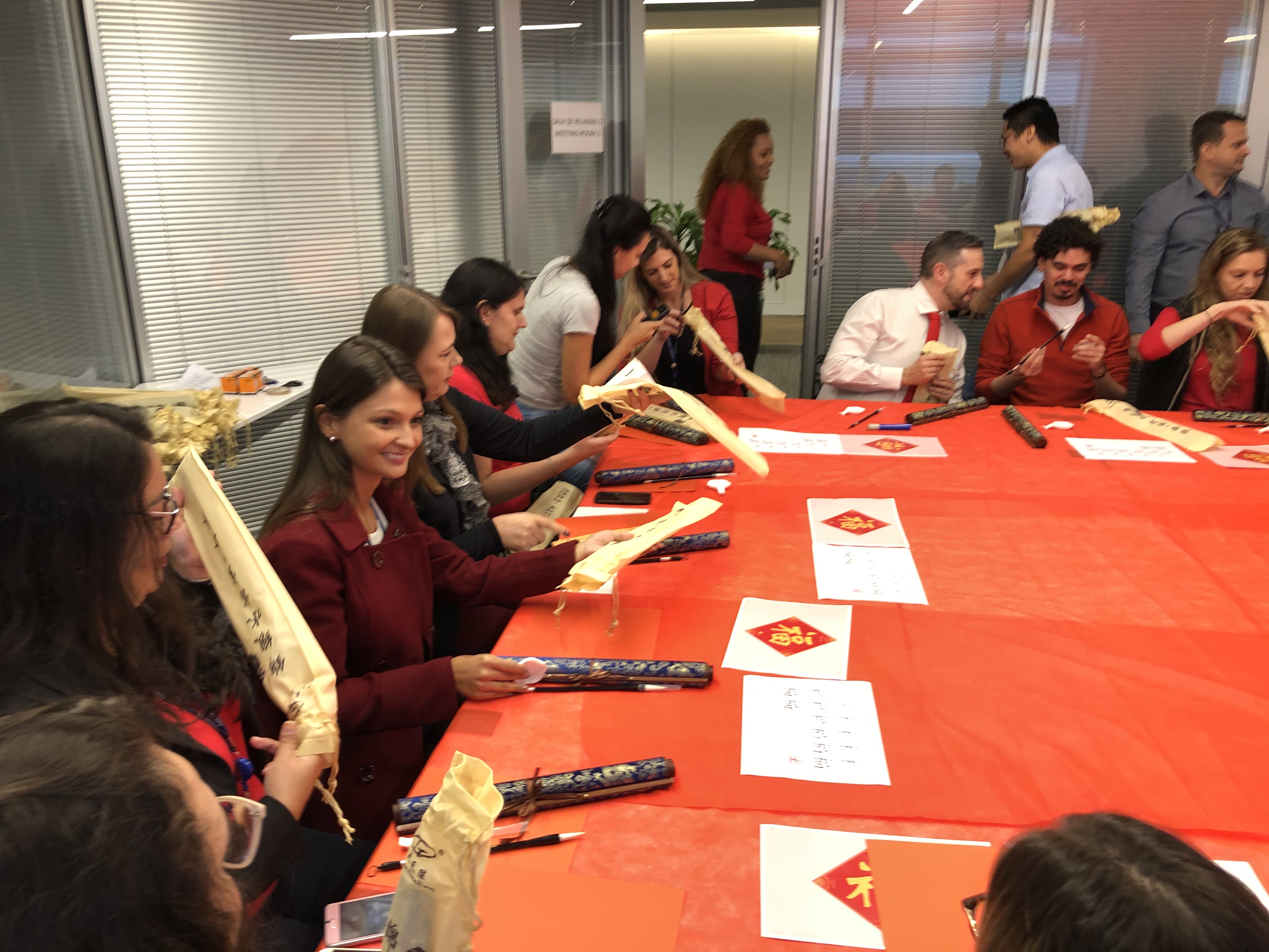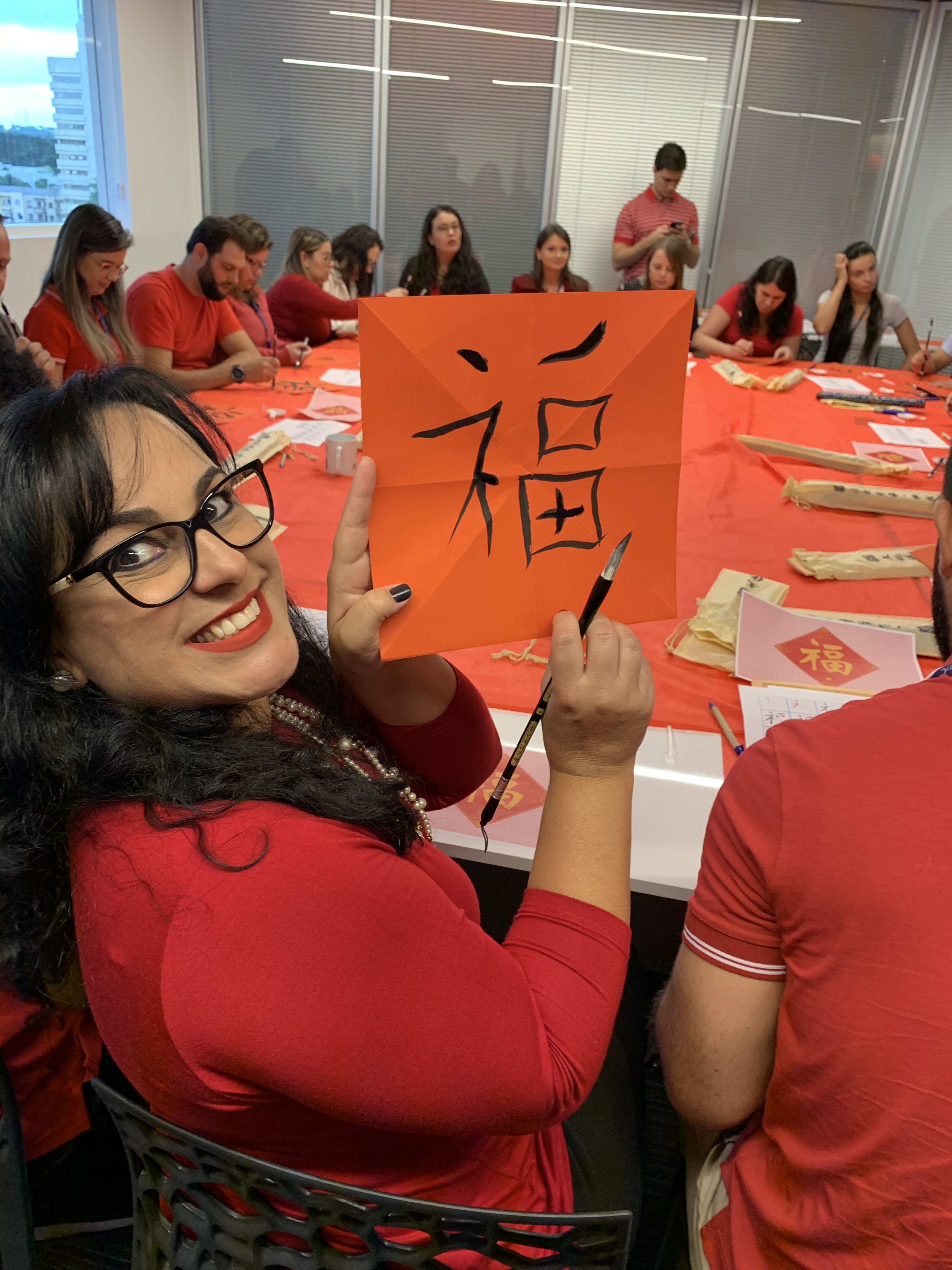 2020年1月17日,巴西公司組織“新春送福”活動(dòng)。圖為員工們展示作品合影。